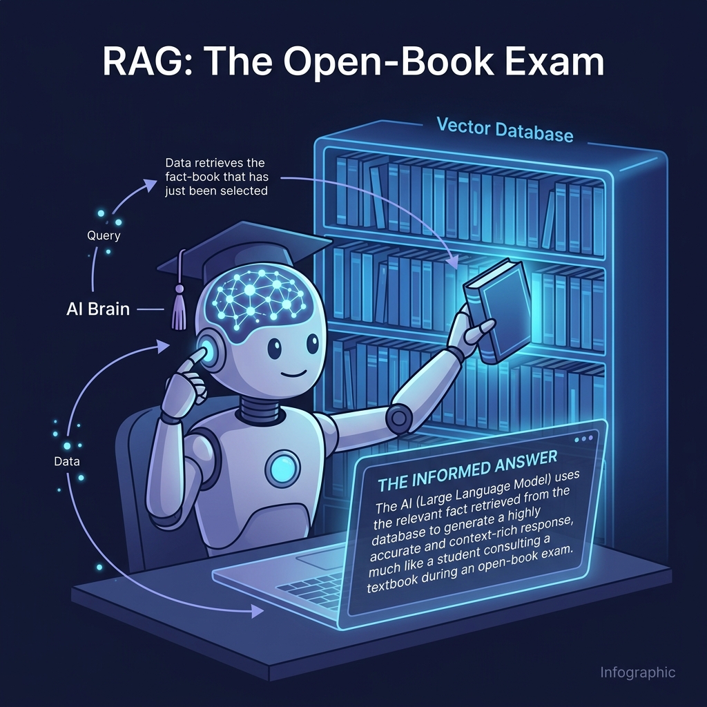 Imagine you are taking a history exam. You are a smart student with a great memory, but your teacher lets you use a library during the test. When you get a question you aren't 100% sure about, you don't guess—you walk to the shelf, grab the right book, and read the answer.