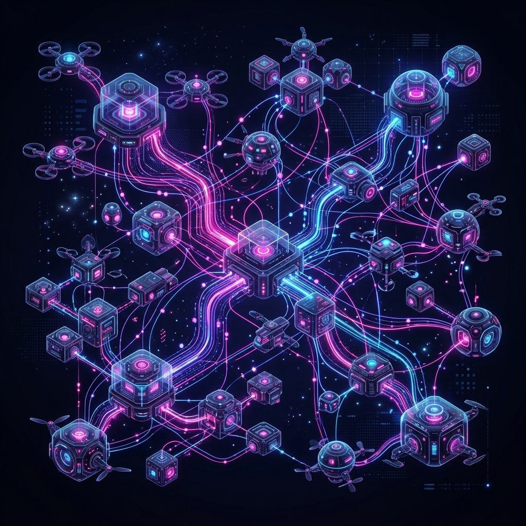 A microservices architecture functions like a constellation of specialized, flying drones. They operate independently but talk to each other over a network.