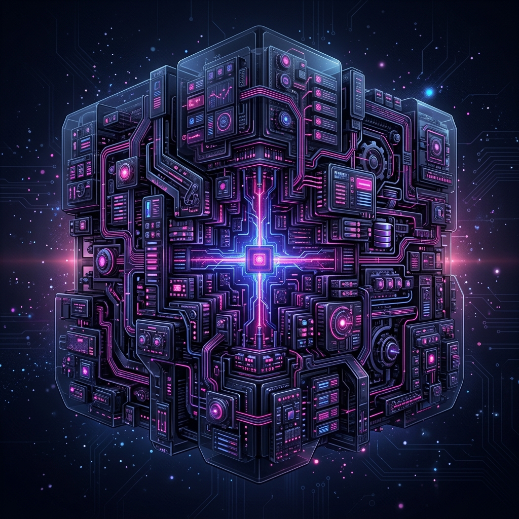 A monolithic architecture is like a massive, deeply interconnected machine. Everything runs together in one place.